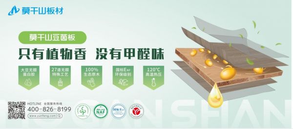 在此,小编推荐莫干山板材的ENF级豆茵板。这款诞生于2020年的板材,有害物质排放量≤0.025mg/m³,是真正的近零排放板材。板材采用从大豆中提取的大豆基蛋白胶作为粘合剂,通过三道120℃高温热压工艺,让板材更紧密,强度更高,可以承受更大重量的物品存放。