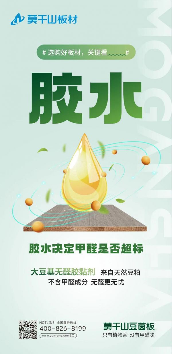 首先,莫干山板材早在2020年就推出了ENF级豆茵板,经过权威机构检测这款豆茵板的甲醛排放量≤0.025mg/m³,达到了基材无甲醛添加的标准。这款板材采用的粘合剂是从大豆豆粕中提取出来的大豆基蛋白胶,从粘合剂源头杜绝了甲醛苯酚等有害物质产生。这位小伙伴需要在家装结束后迅速入驻,选择这类近零排放的板材非常有必要。