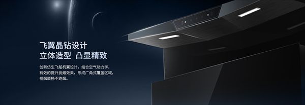 森歌集成灶i5系列采用“飞翼星钻设计”科技感十足。两侧白色灯带闪亮间,似乎可以从中窥见未来星际时代厨房一隅。而且立体的仿生飞船机翼设计结合了空气动力学,增大拢烟覆盖区域,拢烟效果更好,美观实用两不误。