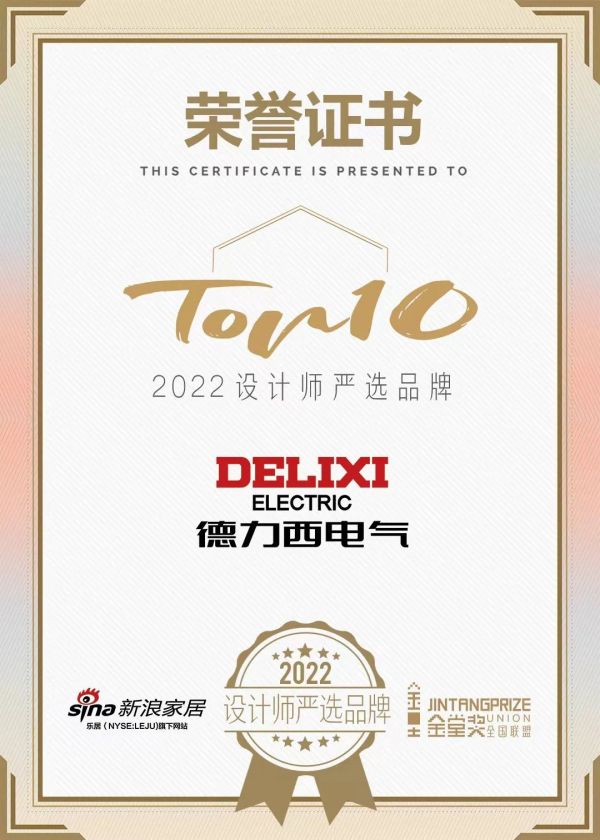 德力西电气凭借国潮设计理念,以及对产品技术的不断突破创新,获得设计师评审的一致认可,最终荣膺「2022 设计师严选品牌TOP10」称号。