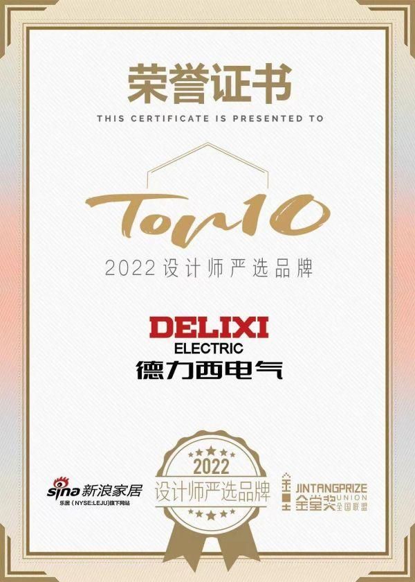 德力西电气凭借国潮设计理念,以及对产品技术的不断突破创新,获得设计师评审的一致认可,最终荣膺「2022 设计师严选品牌TOP10」称号。