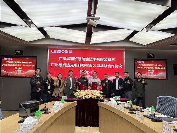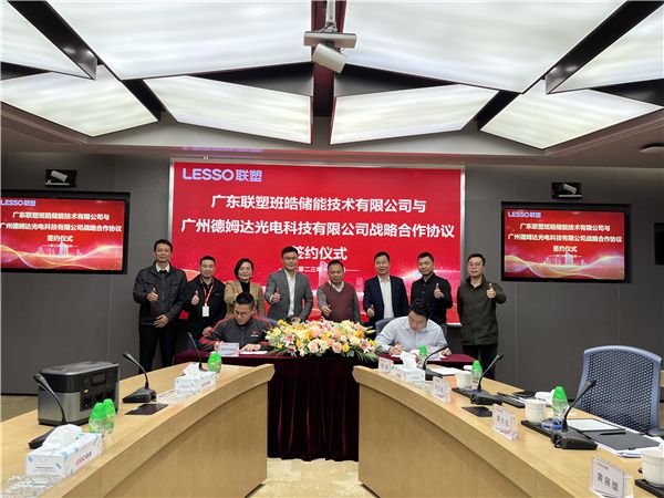 1月3日,广东联塑班皓储能技术有限公司与广州德姆达光电科技有限公司战略合作协议签约仪式在联塑集团总部举行。广州德姆达广电科技有限公司(以下简称“广州德姆达光电公司”)董事长叶文祥一行;联塑集团董事局主席黄联禧、集团副总裁兼联塑班皓总经理黄金朝、集团副总裁黄展雄等双方领导出席会议。