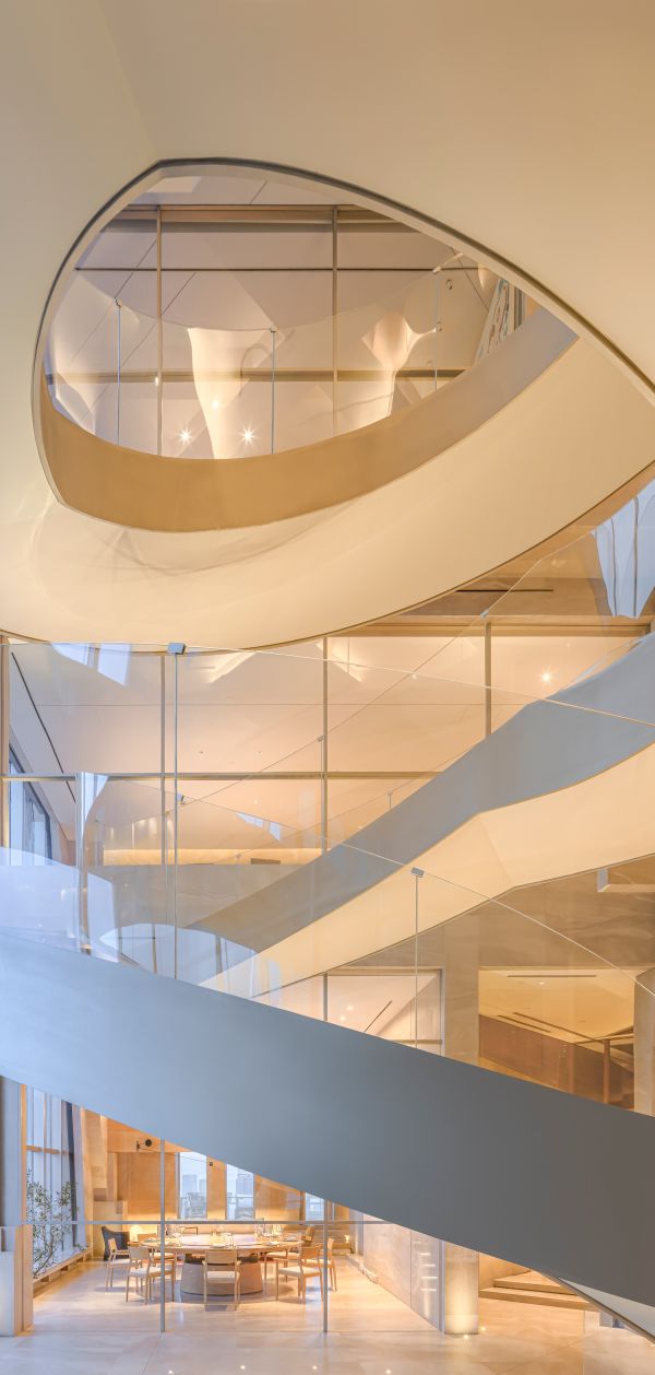上海最好的观景位置条件,沪上餐饮界一大旗帜“晶采轩”餐厅,卓越出品与服务管理;这是一颗晶莹的珍珠,外滩缱绻一湾江水的平面就是晶采轩的剖面,条件至高无上有目共赏,我认为创造更开阔更通透的视野是整个空间塑造的核心要素。