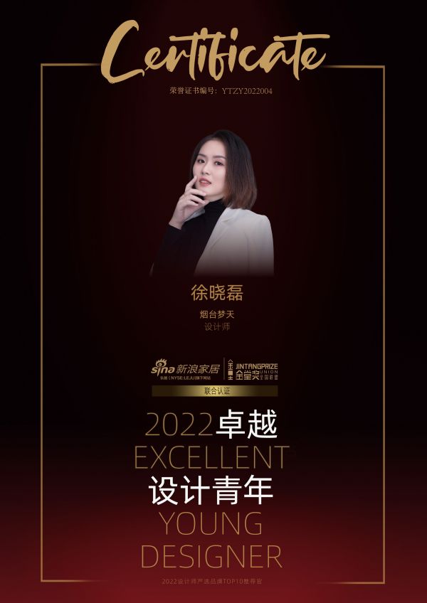 【徐晓磊】:非常荣幸能够获得“2022 卓越设计青年”这么高的荣誉,感谢新浪家居与金堂奖的认可与支持,我会继续努力学习,给客户带来更好的家的体验!