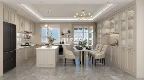【徐晓磊】:以中华城项目为例,客户喜欢法式的浪漫,比较注重细节,所以木作产品采用梦天造型墙板,加入罗马柱以及装饰线条,背景墙搭配大纹理石材,厨房加入中岛台,满足了客户对细节的要求又营造出了浪漫温馨的生活氛围。