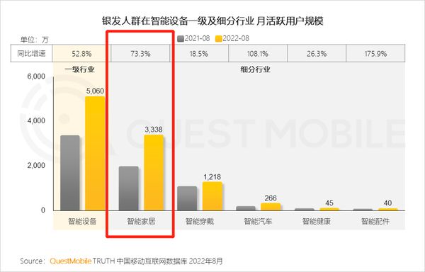 截止至2022年8月,银发用户在智能家居行业的月活跃用户规模达到了3338万,同比增长73.3%,活跃用户的数量有着明显的增长。从以上数据不难看出,中老年人已经逐渐成为智能家居产业的重要用户群体,但适老化的不足的问题也为老年人的实际产品体验带来困境。