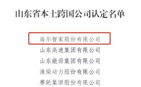 12月31日,山东省商务厅公布了首批山东省本土跨国公司认定名单和山东省本土跨国公司重点培育企业认定名单。其中,海尔智家入选首批本土跨国公司认定名单,且位列第一。