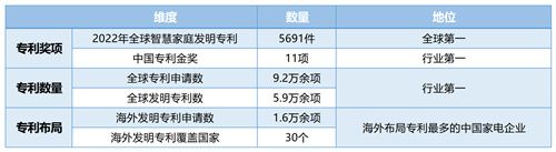 除此之外,截至2022年底,海尔智家全球累计专利申请9.2万余项,其中发明专利5.9万余项,位居中国家电行业第一;海外发明专利累计申请1.6万余项,覆盖30个国家,是在海外布局专利最多的中国家电企业;累计获得中国专利金奖11项,行业第一。