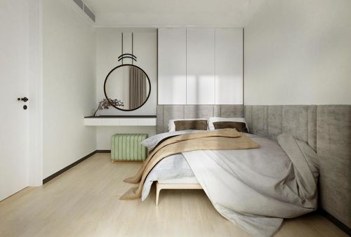 卧室,以简单纯粹的原木风为主,白色墙面和木纹砖的搭配,形成鲜明的空间层次感,勾勒出自然原始的生活轮廓。淡雅的软装和嵌入式的梳妆台设计,散发着静谧、沉稳的气息,打造出舒适的睡眠环境。