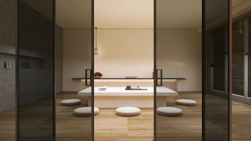如果单独划分一个房间作为茶室空间似乎并不适合大部分的家庭,但如果可以通过巧妙的隔断方式,让公共互动的区域规划,打造一个集合休闲、娱乐、品茶为一体的空间,不仅增加家居布局的自由度,更能提高空间的使用功能性。而这很适合采用玻璃隔断门进行空间分界,独立不被打扰,又保持了开阔视野。