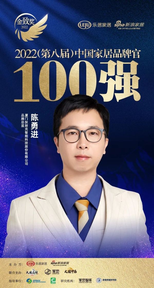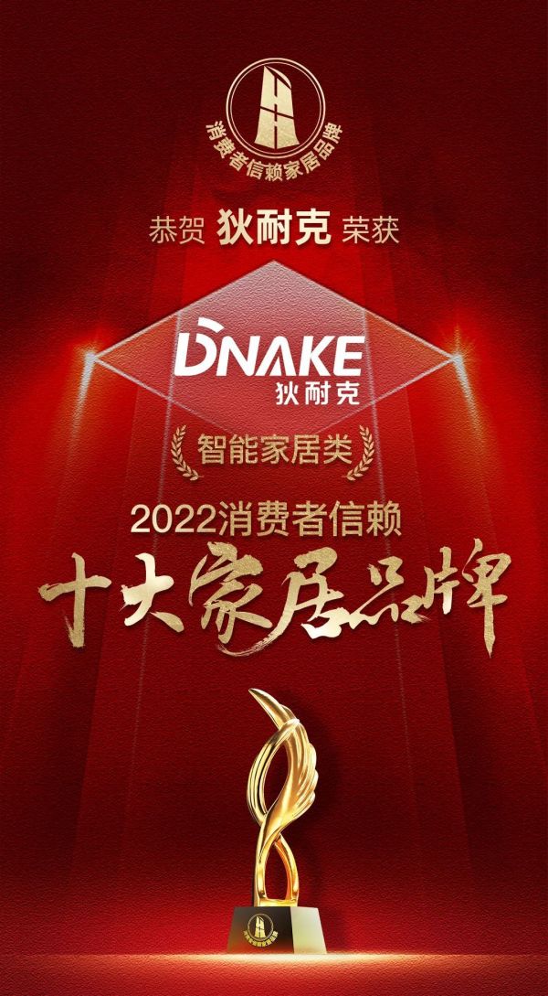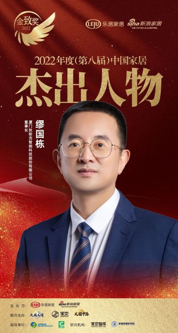 12月26日,由乐居家居主办,新浪家居承办,大国品牌、家页智库、大国中居联合主办的“趁势·再起——2022中国家居新时代盛典暨金致奖颁奖典礼”于云端举行。狄耐克荣获“2022消费者信赖十大家居品牌·智能家居类”奖项,狄耐克董事长缪国栋荣获“2022中国家居杰出人物”奖项,狄耐克品牌总监陈勇进荣获“2022中国家居品牌官100强”奖项。