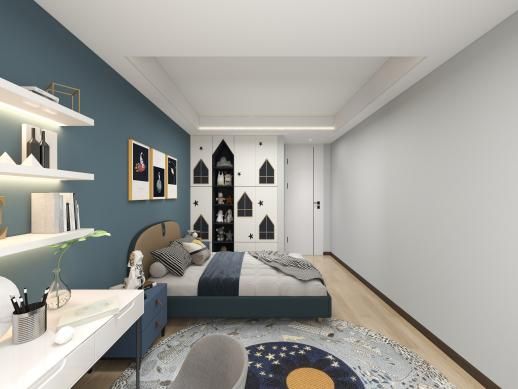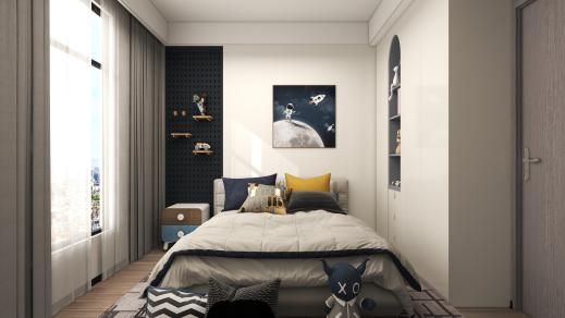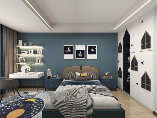 建立太空站犹如在太空安了家,通过造型设计,把星星、太空舱装饰在家具饰面上,显得更加梦幻、有趣,给孩子建立一座生动温暖的天空城堡。