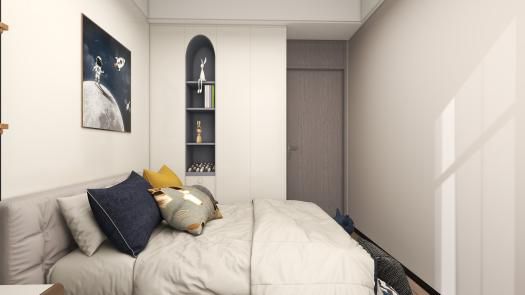 用雪域白色来做家具主色调,在微微白光的装点下,如身临太空一般,平常而又微带奥妙,睡梦中便可与心中的偶像航天员一起遨游太空。