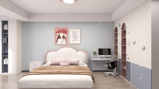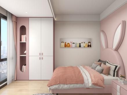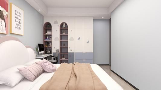 整体干净的室内,就像天空一样纯净高远,任思绪向上纷飞。一组温馨雅致饰面的组合衣柜,兼具收藏功能,在几只蝴蝶的萦绕下,想象更加生动。