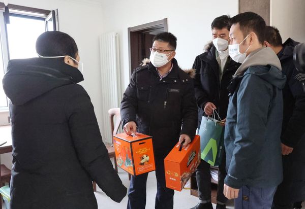 慰问一行人员在阵阵寒风中,为老客户送上温馨的祝福