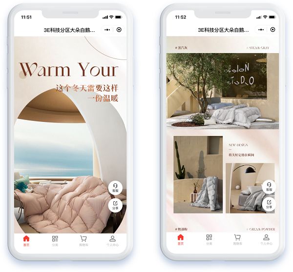 为更好地贴合品牌业务,双方团队充分调研了水星家纺线上业务布局与私域基础。2020年1月,借力微盟智慧零售而搭建的“水星家纺”全渠道商城正式上线,旨在面向全渠道消费者构建完整品牌认知和互动体验。