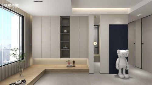 次卧空间功能分区明确,飘窗地改造为简约一字型书桌,抽屉柜设计满足收纳需求。