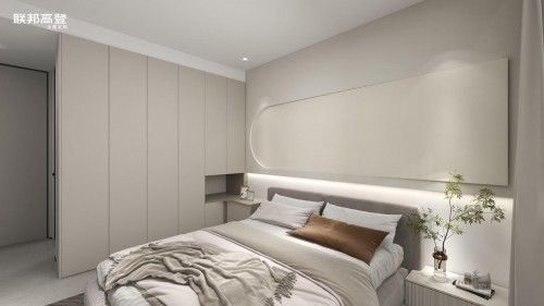 主卧整体以自然灰调为主,利用光和面营造出简雅宁静氛围。同时,彰显独特个性的墙面设计,造就了百般情感交织。