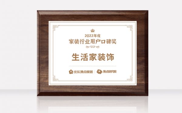 “2022年度家装行业用户口碑奖”重磅发布!生活家装饰作为泛家居行业的代表,经线上投票和专家评审,最终荣获“2022年度家装行业用户口碑奖”!