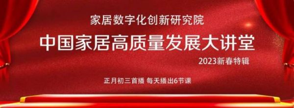 又是一年的新春佳节,辞旧迎新,新年新气象。春节期间由全国工商联家具装饰业商会家居数字化创新研究院主办的2023“中国家居高质量发展大讲堂”又要和大家见面了!《中国家居高质量发展大讲堂》自2022年春节推出以来,深受行业的好评,最多时一场十几万人在线收看。在此,商会衷心感谢大家的辛勤付出,特别时帮忙之中为大家录制课程的老师们。