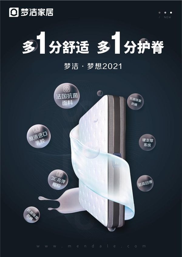 依据国人睡眠特质,梦洁家居推出了更适合“中国脊椎”的床垫——“带弹簧的记忆棉床垫”,最大程度满足中国人的传统睡眠偏好。同时,梦洁家居依托多年床垫制造经验,为每位用户量身定制专属床垫,打造最舒适的睡眠体验。