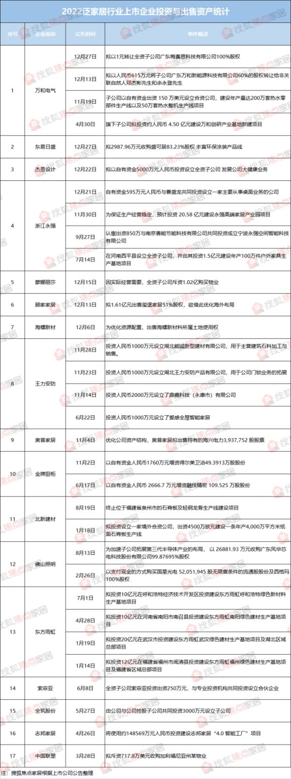 整体而言,虽然2022年受疫情、房地产等外界环境因素影响严重,但家居行业整体依旧保持着稳健发展步伐,对外投资、增产、扩能消息不断。