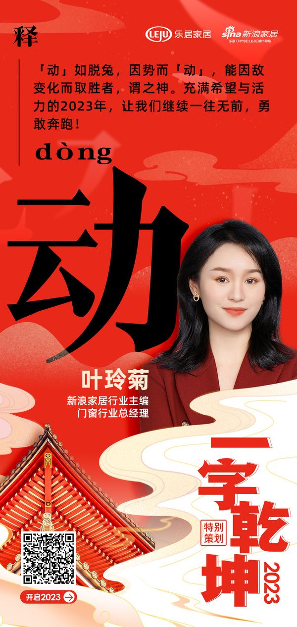 兔年开年之际,新浪家居诚挚推出“2023 一字乾坤”活动。本活动齐聚家居10大行业,百位企业家,用一个汉字展望自己心中的“2023”。通过汉字之美传递中国家居人初心依旧,奋发向上,自强不息,创新不辍的精神面貌。