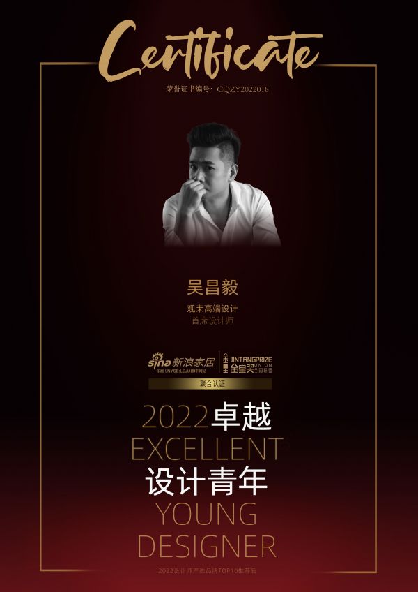 近年来,中国设计已经不是之前的盲从者,一批又一批优秀的青年设计师,用现代设计语言表达着中国当代新人居,诠释着中国人现有的生活审美和品位。中国设计的青年力量,已经完成了自我突破的变革期。转变为引领中国生活方式和设计潮流的先锋倡导者——“2022卓越设计青年”。由新浪家居和金堂奖全国联盟发起,是设计业界最具传播价值的年度先锋荣誉,其成员由全国设计领域青年精英设计师组成,新浪家居与金堂奖联名认证。本次活动致力于在全国范围内发掘和表彰室内设计领域表现卓越的杰出青年设计师,为推动中国设计中坚力量,中国设计新影响力而努力。