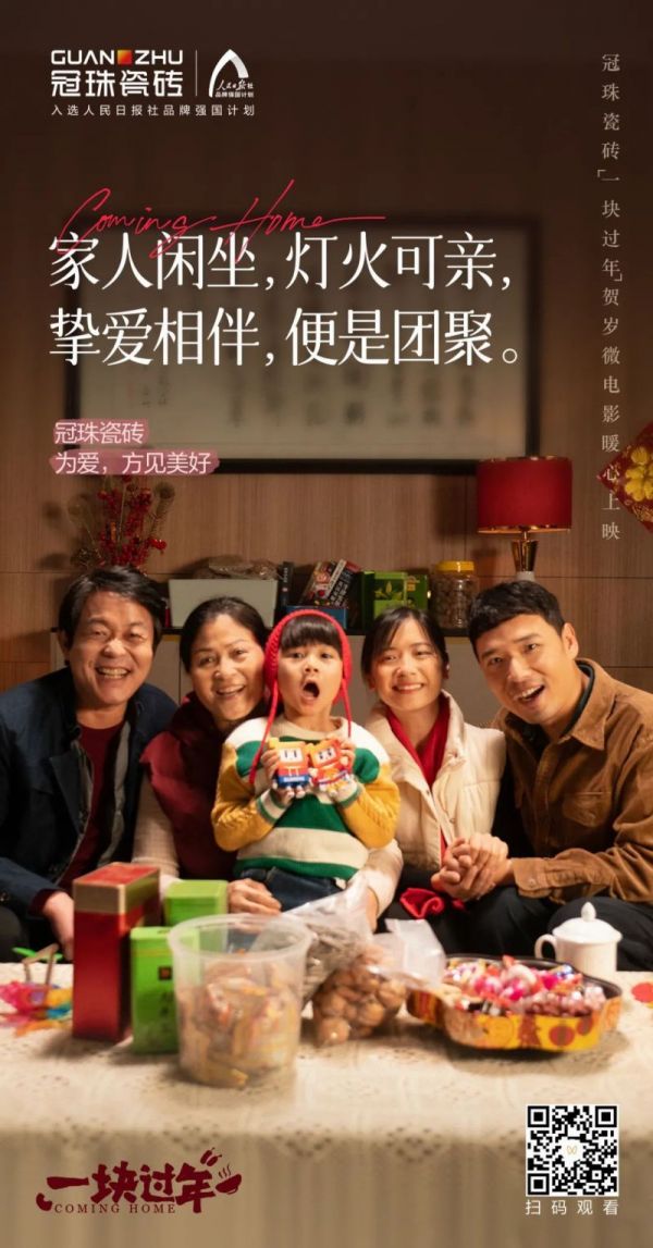冠珠瓷砖谨以《一块过年》贺岁微电影献礼广大家庭,为美好生活提供更优的人居方案,也祝愿大家:挚爱相伴、一块过年、阖家幸福!