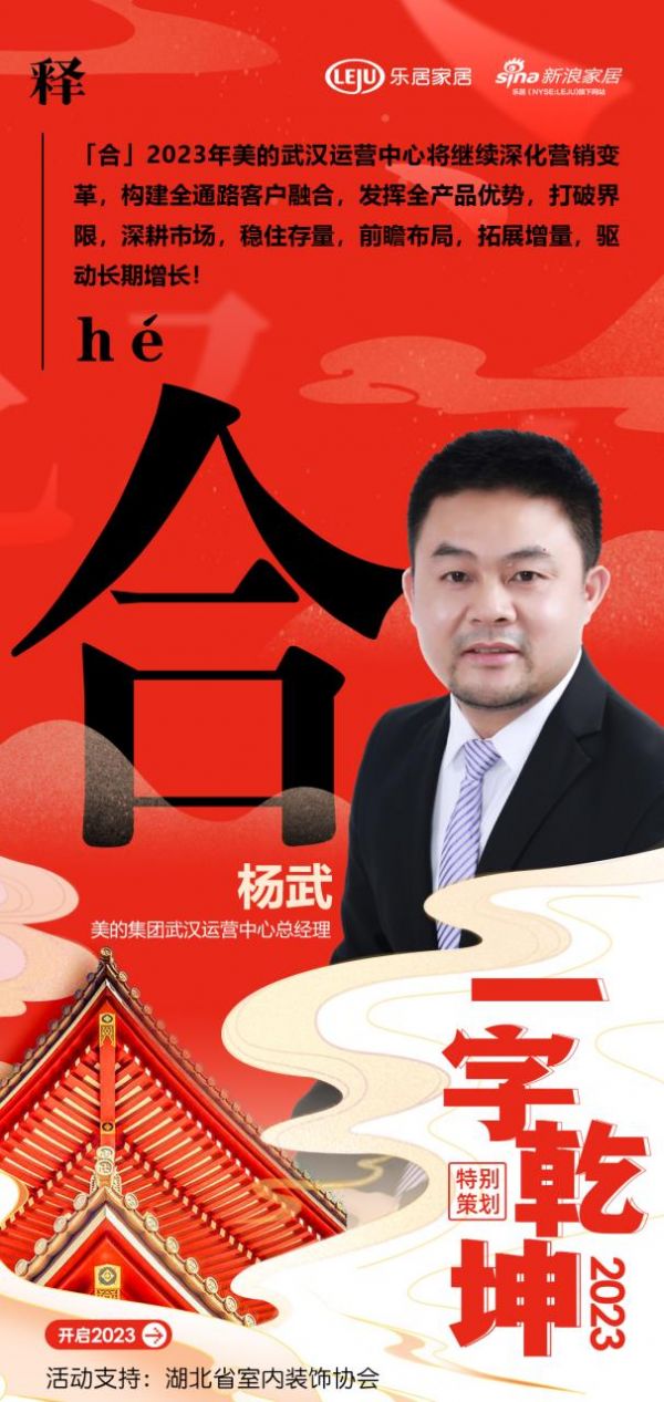 在新浪家居“2023一字乾坤”活动中,美的集团武汉运营中心总经理杨武:「合」2023年美的武汉运营中心将继续深化营销变革,构建全通路客户融合,发挥全产品优势,打破界限,深耕市场,稳住存量,前瞻布局,拓展增量,驱动长期增长!