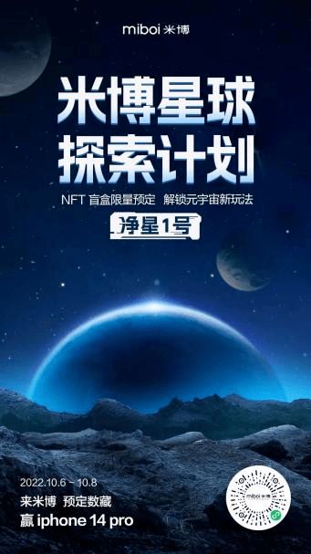 去年10月米博紧跟元宇宙大潮,推出“米博星球探索计划”并上线“净星一号”数字藏品盲盒,用原住民推荐官测试裂变海报,吸引三十万名新住民入驻米博星球,完成数藏预订,解锁元宇宙新玩法。