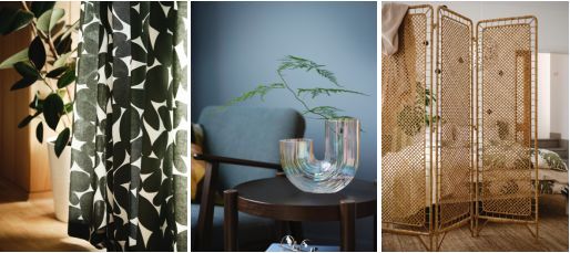ROSENANEMON若森奈莫 窗帘;RÄFFELBJÖRK拉弗比约 花瓶;TOLKNING托克宁 房间隔板