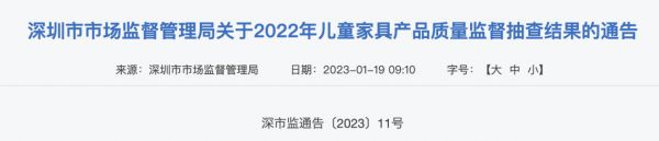 新浪家居讯 2023年1月19日,深圳市市场监督管理局官网发布了《深圳市市场监督管理局关于2022年儿童家具产品质量监督抽查结果的通告》。《通告》显示,深圳市30家受检单位的60批次产品,发现不合格产品10批次,品牌涉及思迅洁、图形、小鹿知途、童步成长。