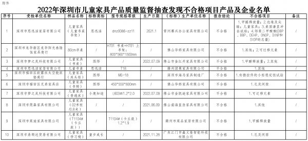 2022年,深圳市市场监督管理局组织对深圳市生产和销售的儿童家具产品开展了质量监督抽查。抽查产品为儿童家具产品,含童床、儿童高椅及其他儿童家具。