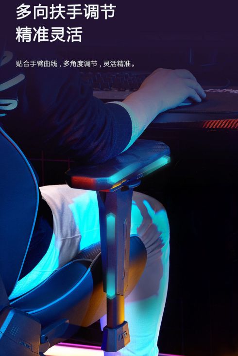 扶手要满足可以自由调节上下左右前后。因为要支撑肘部,玩游戏、办公时才能最舒服。