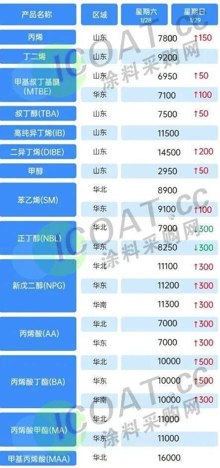 (万华化学1月29日产品报价表)