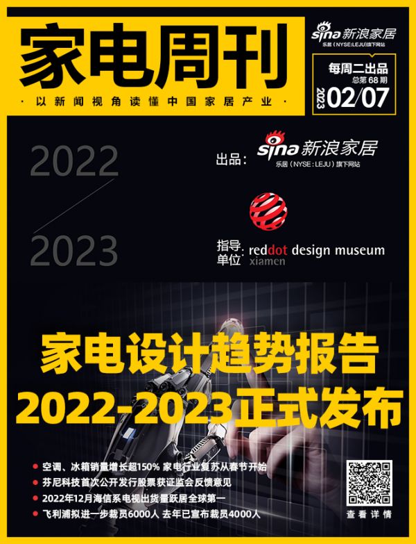 回顾2022,展望2023。2022年10月,家居行业权威媒体平台新浪家居携手世界三大设计奖之一红点设计奖全球第三个博物馆-红点设计博物馆·厦门,耗时3个半月,共同制作了业内首部《家电设计趋势报告》,并于2023年1月正式线上发布。