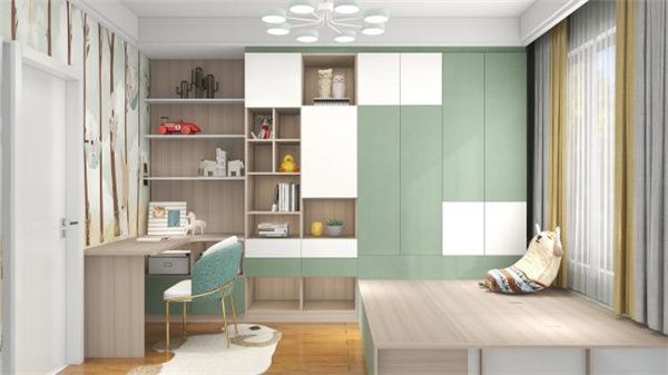 领尚时光清浅系列,配备榻榻米、衣柜、书柜多功能组合,榻榻米的内空设计可满足主人的隐形储物需求,搭配衣柜和书柜,又能满足客卧或书房的使用需求,作为未来的儿童房使用也是不错的选择,可谓一举多得。