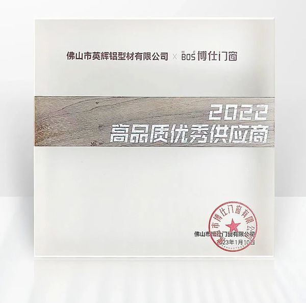 英辉铝业获评“博仕门窗2022品质优秀供应商”