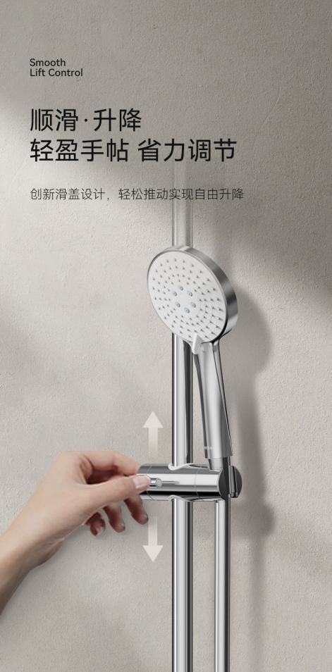 REMO更贴心为全家沐浴搭配省力手帖滑座与防爆抗压软管,顺滑调整出水高度与有效防止打结缠绕。