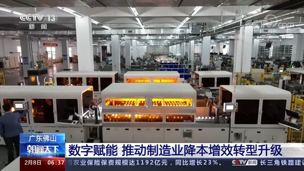 2月8日,中央电视台新闻频道《朝闻天下》报道了在广东佛山数字赋能工业经济、推动企业提能升级的情况。