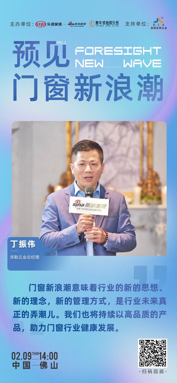 库勒五金总经理丁振伟:门窗新浪潮意味着行业的新的思想、新的理念,新的管理方式,是行业未来真正的弄潮儿。我们也将持续以高品质的产品,助力门窗行业健康发展。