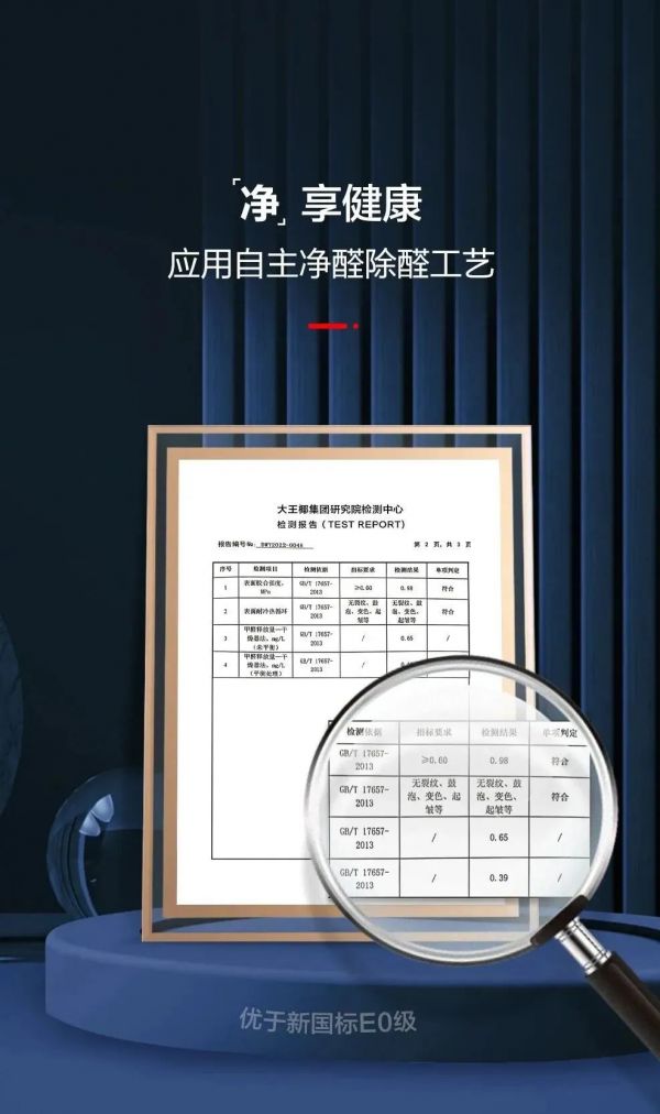A7ᴿ家具板应用大王椰新型环保胶粘剂,防潮、防蛀,环保等级优于最新国家标准E0级。绿色健康犹如妈妈级呵护,经久耐用,品质如初。