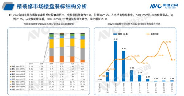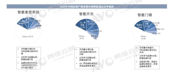 奥维云网(AVC)《2022年中国房地产商品住宅精装修市场智能家居年报》总结精装修市场智能产品呈现以下特征: