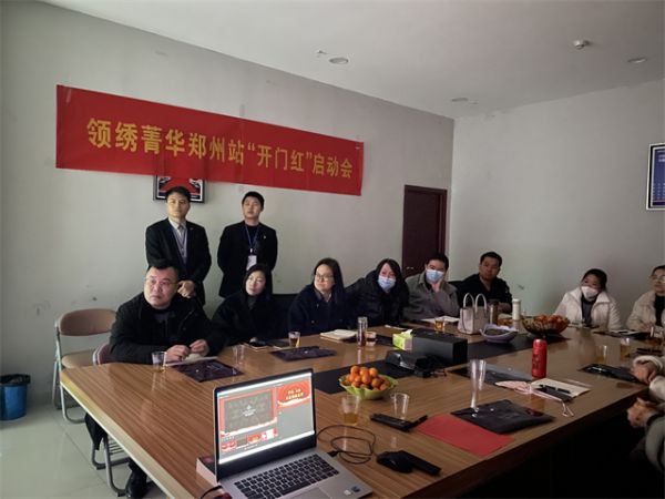2月10日,领绣菁华郑州站“开门红”启动会上,联翔总部销售部精英集结,重拳出击,帮扶郑州专卖店的新开业。