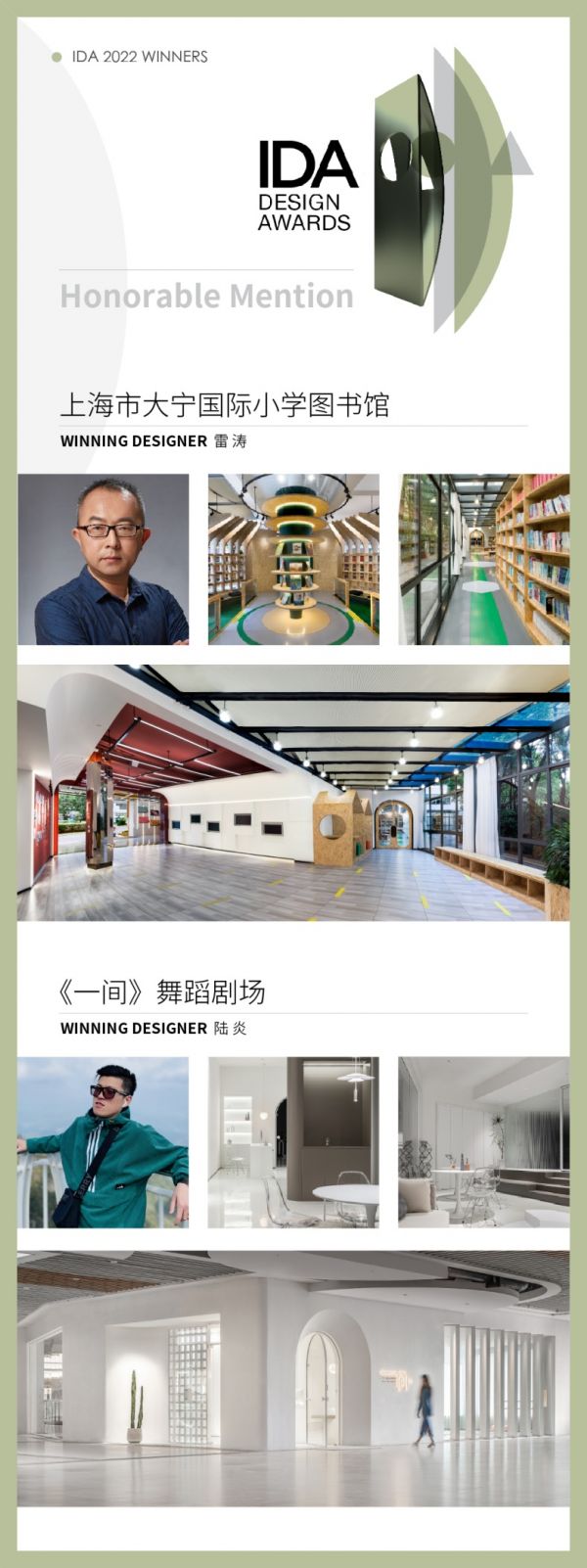据悉,百安居设计总监雷涛提交的“上海市大宁国际小学图书馆设计”优秀设计案例,结合了中国传统文化中“象牙塔”的概念灵感,以“书塔”为设计源泉,鼓励学生以“象牙塔”为最高学术目标,让学生可以在此通过阅读了解世界,拓宽视野,创造广阔的世界观,培养好学动力和阅读精神。百安居设计师陆炎所提交的“一间舞蹈剧场”设计作品,以设计语言探索了舞蹈教育与剧场实践的创意融合,用自然的秩序构建出通透的场域,在嘈杂紧凑的商业环境里,打造出恬淡、缓慢、辽阔、静谧的时空表达。