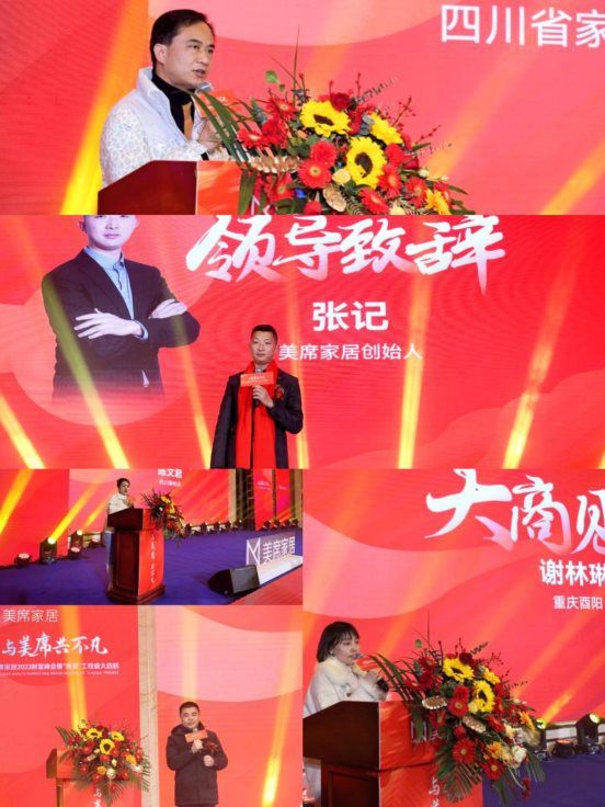 在经销商家人们的共同见证下,由美席家居创始人张总,四川省家具进出口商会运营总监张远军,美席营销总监陈总,美席财务总监王总,美席研发总监石总,标杆经销商重庆铜梁李永良、四川攀枝花 陈文君、重庆酉阳 谢林琳,开启美席2023“席望”工程启动仪式,未来,美席以昂扬的斗志共绘家居蓝图。