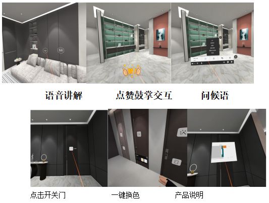 产品交互和互动:实现身临其境的开关,抓取,一键换款换色等沉浸式互动体验,可进行点赞,鼓掌,常用语,产品收藏等互动。