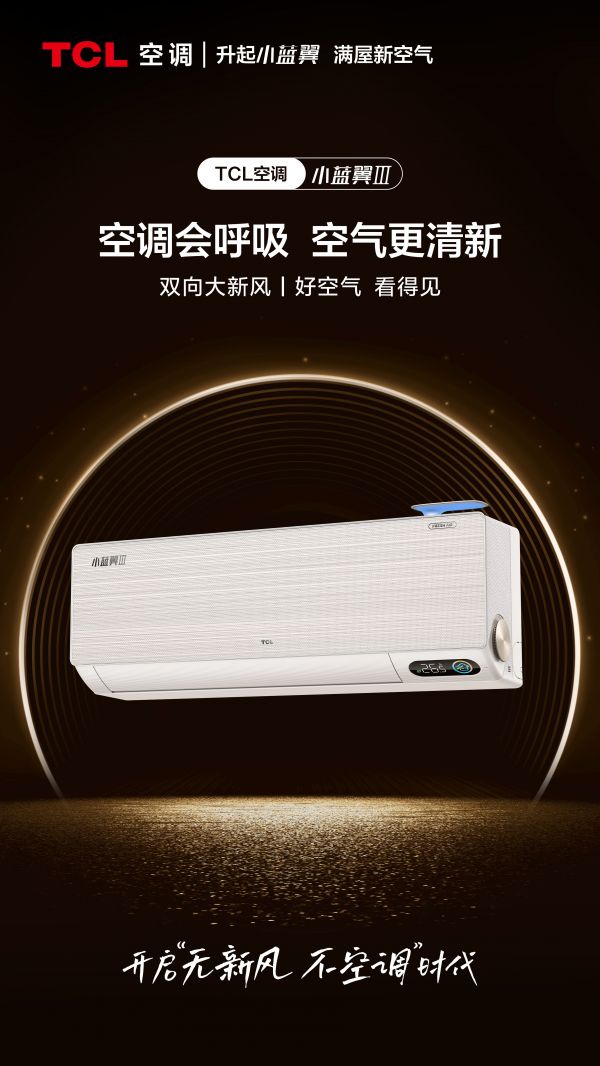 2022年底,TCL空调发布了第三代新风产品——TCL新风空调小蓝翼Ⅲ,凭借业内首创可呼吸新风技术——“双向新风”,大大拓展了新风换气的使用场景,为用户带来更加丰富实用的产品体验。