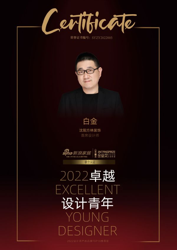 【白金】:很荣幸评选为“2022 卓越设计青年”,感谢新浪家居与金堂奖的认可,感谢威士伯品牌给予我们的信任与支持。设计之路上,我们会再接再厉,创造新的章程。